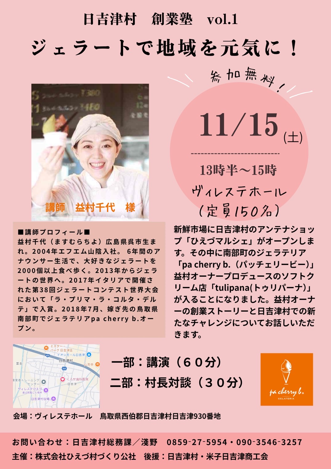 日吉津村 創業塾vol.1「ジェラートで地域を元気に!」の開催について